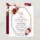 Budget Elegant Monogram Burgundy Gold Blush Floral Faire-part de mariage est livré avec simple monogramme front avec cadre d'or géométrique Marsala bordeaux avec texte élégant et dos floral bordeaux.