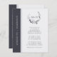 Faire-part de mariage avec monogramme en typographie moderne et grasse, noir onyx et blanc doux, avec tous les détails... Notre faire-part de mariage noir et blanc "tout-en-un" abordable présente une typographie serif grasse associée à du texte sans serif pour un faire-part de mariage monogrammé simple et tendance. Le monogramme en noir onyx entouré de feuilles et les illustrations feuillues sont des éléments botaniques dessinés à la main et encrés de manière artistique... donnant un look unique et stylé aux mariées modernes. Le verso du faire-part contient tous les détails que l'on trouve généralement sur des cartes séparées dans le paquet de mariage, y compris l'heure et le lieu de la réception, les options d'hébergement, le site web du mariage, les informations de RSVP et de liste de mariage. Ce faire-part de mariage double face de style moderne a été conçu pour être tendance, économe en temps et respectueux de l'environnement. Tout le texte d'exemple peut être facilement modifié avec vos propres informations sur le modèle de personnalisation. Veuillez noter : vous avez la possibilité d'acheter des enveloppes avec vos faire-part ou de vous