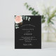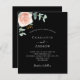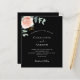 Arrière - plan noir. Décoré d'or rose et de fleurs rose rousse, de fleurs roses et de feuilles d'eucalyptus vert couleur eau, sprigs, de la verdure et des sprigs faux or. Personnalisez et ajoutez vos noms et les détails du mariage. 1 feuille = 1 invite imprimé bord à bord.