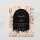 Une invitation moderne, design et romantique à une mariage. Un cadre en arc de cercle noir, décoré de doux dorés rose clairs, de fleurs roses et crème. Personnalisez et ajoutez vos noms et les détails. 1 feuille = 1 invite imprimé bord à bord.