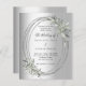 Un arrière - plan faux argenté. Un cadre argenté ovale décoré de vert sage. Personnalisez et ajoutez vos noms, détails. Texte noir. 1 feuille = 1 invite imprimé bord à bord.