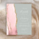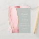 Le bord gauche de cette élégante faire-part de mariage moderne est orné d'une bordure en aquarelle rose vif et recouverte d'une parties scintillant en faux or. Le texte personnalisable combine écriture blanche, copperplate et polices italiques sur un arrière - plan vert sauge pâle. L'envers est assorti d'un design d'agate en blush et or.