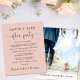 Faire-part élégant et économique pour annoncer un mariage intime ou une fugue amoureuse, pour informer famille et amis que vos plans de mariage ont changé et que vous avez décidé de vous enfuir ou de réduire le nombre d'invités à votre mariage, et pour les inviter à une réception de mariage ou une fête de célébration. Le recto comporte "Fête de rêve" dans un mélange de typographie simple et d'écriture élégante avec fioritures, et vous pouvez personnaliser votre message et votre invitation de manière plus détaillée ainsi que vos noms dans une écriture semblable à une signature. Le verso comporte votre photo de mariage préférée, vos prénoms et la date de votre mariage.
