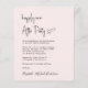 Faire-part de réception de mariage rose clair économique avec "Soirée pour toujours heureux" dans un script moderne chic, votre annonce de mariage et invitation en typographie serif classique et vos noms dans un script ressemblant à une signature. Le verso présente votre photo, vos noms et les dates du mariage et de la réception.