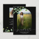 Invitez votre famille et vos amis à vous aider à célébrer cette étape incroyable dans votre vie ! Cette version économique de notre superbe arche minimaliste moderne Boho pour invitation de remise de diplômes comprend des emplacements pour deux de vos photos, vos informations personnelles, et un joli brin de lierre ornant l'avant et l'arrière. Nous adorons le fond noir classique avec une typographie manuscrite blanche, mais cherchez d'autres options et accessoires dans notre Collection Remise de diplômes.