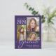 Faire-part de remise de diplôme violet économique avec un collage photo de 3 images et "Diplômé" dans un script blanc élégant. Ajoutez le nom du diplômé, l'année de promotion et l'école ou l'université dans une typographie moderne.