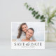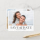 Moderne et minimaliste, enregistrez la carte datant avec une typographie noire élégante sur un arrière - plan blanc immaculé. Ce design contemporain comprend de l'espace pour deux photos personnelles, vous permettant de présenter vos moments préférés. Parfait pour les mariages minimalistes, élégants ou noirs et blancs. Entièrement personnalisable et facile à éditer avec vos propres détails pour une première impression élégante et mémorable.