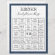 Profitez de ce jeu de bingo amusant lors de votre prochaine réunion de famille. Trouvez les matchs de votre propre famille pour vous amuser! ! Arrière - plan bleu damassé.