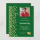 Une invitation moderne et élégante à Graduation Party. Un arrière - plan vert de forêt décoré de faux confettis d'or. Personnalisez et ajoutez une photo, un nom et des détails de la fête. Texte blanc. 1 feuille = 1 invite imprimé bord à bord.