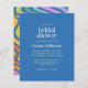 Cette vibrante invitation à la douche nuptiale présente un front bleu cobalt audacieux avec une typographie moderne propre et des détails élégants de script. Le dos présente un motif rétro amusant à rayures rétro dans les tons vifs de l'arc-en-ciel, ajoutant une touche amusante et super. Parfait pour célébrer une mariée élégante avec une douche colorée et optimiste. Imprimé sur papier économique, il est idéal pour des réunions modernes, jardins ou décontractées avec personnalité.
