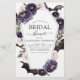 Budget Halloween 31 Octobre Automne Automne Couleur d'eau foncée Violet foncé Mariage Douche nuptiale Invitations sur arrière - plan pourpre - comprend hantante et effrayante typographie de script élégant avec des fleurs modernes et des ailes chauves-souris pour la fête spéciale de la Mariée Déplaisante d'être.