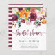 Invitations de douche nuptiale moderne avec une goutte d'eau fleurie avec des pivoines et des roses dans les tons rose, bordeaux, et marsala avec de beaux feuilles verts. La typographie affiche les mots "douche nuptiale" dans une police calligraphique élégante et les détails de votre douche nuptiale dans une police sans-serif. Dans le cadre de la sélection du budget ici sur Zazzle, ces invitations ne sont pas fournies avec des enveloppes et ne s'insèrent pas dans une enveloppe de taille standard. La taille la plus proche est A6 mais il y aura un écart d'environ un demi-pouce. Si vous n'avez pas peur du manque de douceur, vous pourriez utiliser des enveloppes A6 aussi largement disponibles. Sinon, cette conception peut être transférée dans un format standard 5x7 (avec enveloppes) à l'aide de l'outil de transfert de conception. À titre d'exemple, au moment de la rédaction du présent document, 100 invitations budgétaires (y compris une remise sur le volume) coûteraient environ 39 $, alors que 100 invitations standards 5x7, y compris des enveloppes, coûteraient environ 135 $. Votre kilométrage peut varier en fonction des codes promo disponibles de Zazzle, des ventes à l'échelle du site ou des changements de prix.