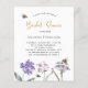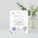 Un arrière - plan blanc. Décoré d'abeilles et de fleurs sauvages peints dans le violet et le rose. Personnalisez et ajoutez un nom et des détails du parti.