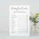 Jeu de Fête des mariées mariage Word Scramble. Jeu amusant et simple de mot saut où les invités résolvent les anagrammes. Le titre "Word Scramble Mariage" se distingue dans la calligraphie à lettres avec élégance décontractée. Design minimaliste chic avec typographie noir et blanc sur un arrière - plan blanc fini, avec un lave-aquarelle doux et une palette de couleurs vert doux au verso. Design simple, moderne et élégant pour coordonner avec de nombreux thèmes de douche nuptiale. Parcourez ma collection pour trouver les articles correspondants ou envoyez-moi un message pour créer les modèles dont vous avez besoin. RÉPONSE CLÉ : BAIN MARIAGE, MÈRE DE LA BRIDE, MARIÉE ET GROOM, FAVORISÉS, FILLE FLEURIE, FÊTE DES MARIÉES, CÉRÉMONIE, DÎNER RÉPÉTITIF, LUNE DE MIEL, BOUQUET, PREMIÈRE DANSE, VOWS, GÂTEAU MARIAGE, LIVRE D'HÔTES.