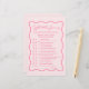 Célébrez avec le jeu "Personnalisé Wavy Pink Fête des mariées What Do He Said", parfait pour l'amour est dans les idées de douches nuptiales air et valentines des douches nuptiales. Doté d'un charmant thème valentines de douche nuptiale, ce jeu complète une douche nuptiale rose et des idées de douche nuptiale rose. Idéal pour nouer le thème de la douche nuptiale ou pour nouer le thème de la douche nuptiale, c’est parfait pour embrasser l’adieu manquant, l’amour est dans le thème de la douche nuptiale fleurie, joli dans la soirée bachelorette rose, et des vibes de soirée bachelorette rose.