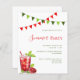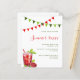 Un arrière - plan blanc, une boisson rouge et des drapeaux rouges et verts en guise de décoration. Modèles pour les détails de votre fête, informations. Retour : arrière - plan blanc. 1 feuille = 1 invite imprimé bord à bord.
