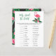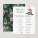 Baby shower invitation design avec flamingo rose avec frondes de feuilles de palmier vert luxuriant et fleurs d'hibiscus tropical. "Aloha Baby". Un motif à fleurs tropicales aux couleurs arrière - plans noires habille le dos de la carte.