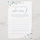 Qui suis-je Jeu de la nuptiale cartes de jeu, la mémoire préférée avec le jeu de la mariée, dispose d'élégante délicate fleur sauvage d'aquarelle et élégant script moderne, palettes pastel de jaune doux, blanc cassé, vert sauge, bleu poussiéreux, et verdure botanique, simple et romantique. idéal pour la fête de campagne rustique, douche de la nuptiale boho moderne, mariage de jardin botanique au printemps et d'été. Voir tous les jeux de douche nuptiale en collection.