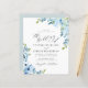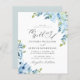 Un design floral aquarelle avec des roses bleu clair peints et un script noir, et une couleur de dos bleu poussiéreux. La couleur et le texte peuvent être modifiés pour correspondre à votre thème mariage. Vous pouvez modifier la taille du texte, la police et le placement.