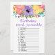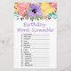 Papier Fleurs d'aquarelle JEU D'ANNIVERSAIRE WORD SCRAMBL