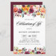 Cette invitation à la fête de la vie présente une douce aquarelle fleurie garland dans des tons chauds d'automne avec de subtils accents de verdure. Le design est calme et accueillant, ce qui en fait une façon réfléchie de réunir amis et famille en souvenir. Les tons terre d'ambre, de rouille et d'or reflètent la saison et offrent un sentiment de paix. L'aménagement est simple et élégant, laissant de la place pour vos détails personnalisés d'événement. Un choix approprié pour honorer une vie bien vécue pendant les mois d'automne.