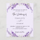 Un arrière - plan violet doux décoré de fleurs de lavande aquarellées Personnalisez et vos noms et détails. Retour : lavande, arrière - plan couleur violet, un grand bouquet floral. 1 feuille = 1 invite imprimé bord à bord.
