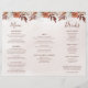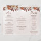 Tombez amoureux de cette charmante carte mariage triplée ! Ce design branché présente une palette de couleurs d'automne chaleureuse et accueillante avec des fleurs en terre cuite et des feuilles, parfait pour un mariage d'inspiration rustique ou boho. Le format triplé offre beaucoup d'espace pour présenter vos délicieuses options de menu, tandis que la typographie élégante et la disposition élégante ajoutent une touche de sophistication. Vos invités seront ravis de découvrir les délices culinaires en magasin en dévoilant cette belle carte de menu.