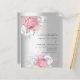 Un arrière - plan faux argenté. Décoré de grandes roses roses roses blanches et roses. Personnalisez et ajoutez vos noms et les détails du mariage. 1 feuille = 1 invite imprimé bord à bord.