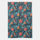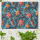 Une belle serviette de cuisine à motif floral en papier transparent contre un arrière - plan bleu.