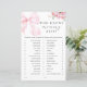 Floral pink bow "Who knows mommy best" baby shower game for a memorable party.