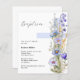 Arrière - plan blanc, avec une grande croix bleu clair ornée de fleurs bleues. Personnalisez et ajoutez le nom et les détails. 1 feuille = 1 invite imprimé bord à bord.