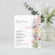 Arrière - plan blanc, avec une grande croix rose ornée de fleurs roses et violettes. Personnalisez et ajoutez le nom et les détails. 1 feuille = 1 invite imprimé bord à bord.