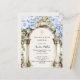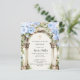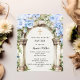 Une grande arche en marbre décorée de fleurs bleues et d'une croix dorée. Personnalisez et ajoutez un nom et des détails. 1 feuille = 1 invite imprimé bord à bord.