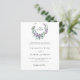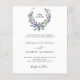 Fond blanc. Une couronne fleurie faite de fleurs de lavande et de verdure d'eucalyptus aquarellée. Personnalisez et ajoutez vos initiales, noms et détails monogrammes. Texte noir. Retour : ajoutez l'url de votre site Web mariage au code QR pour plus de détails et/ou RSVP. 1 feuille = 1 invitation imprimé bord à bord.