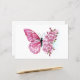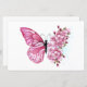 Flower arrangement of pink butterfly with rose Japanese cherry blossoms on white background.