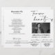Ce programme plié présente un élégant style minimaliste moderne qui comprend un élégant texte manuscrit de typographie qui dit "pour toujours dans nos coeurs" avec un texte noir serif que vous personnalisez le nom et le service funéraire des informations de programme de votre aimé disparu, y compris la date de naissance et la date de décès. Veuillez noter : L'élégante écriture de typographie manuscrite "pour toujours dans nos coeurs" avec coeur, "temps de service", "suivie par la réception", "nécrologie", "ordre de service", et merci, et les lignes et autres illustrations graphiques et éléments ne peuvent pas être modifiés, changés, déplacés ou supprimés. Elles sont réparées. Vous pouvez personnaliser ce programme de photos commémoratives de service funéraire de la façon dont vous voulez vous souvenir et honorer la mémoire de votre être cher.
