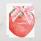 Une grande fraise rouge avec un arc rose pour un Baby shower Berry Sweet. Personnalisez et ajoutez les détails de votre fête. 1 feuille = 1 invite imprimé bord à bord.