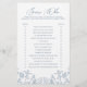 Transportez vos invités de douche nuptiale au glamour de Versailles avec le Français Blue Chinoiserie Bridal Guess Who Game! Les motifs floraux baroques vintages en bleu français onirique sont tout simplement exquis. Ce jeu enchanteur est parfait pour donner vie à votre douche nuptiale ou à votre fête de bachelorette ! Les équipes auront un moment merveilleux à débattre des invites et à essayer de deviner quelle réponse appartient à la mariée rougissante ou au marié. Une façon mémorable de célébrer la mariée tout en rassemblant tous vos invités dans le rire et le plaisir.