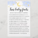 Achetez ce jeu et profitez de la carte de haute qualité Stars and Moon Fun Baby Facts pour votre événement! Activités baby showers ! RÉPONSES : 1.- 8, 2.- 74, 3. - 69, 4. - 3, 5. - 7.5, 6. -20, 7. - kneecaps, 8. - 300, 9. - 6, 10. - 3000, 11. - 350, 12. - 16