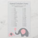 Demandez aux invités de faire correspondre chaque animal avec le nombre de jours que dure leur grossesse avec notre jeu de gestation animal sur le thème des éléphants roses et gris. Les gestations vont de 12 jours à 645 jours. CLÉ DE RÉPONSE : 1)F 2)J 3)E 4)O 5)M 6)L 7)K 8)D 9)I 10)B 11)A 12)G 13)C 14)H 15)N
