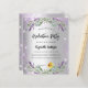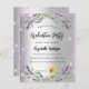 Une invitation moderne et élégante à la remise des diplômes. Un arrière - plan faux argenté avec parties scintillant violette, étincelants, fleurs de lavande, fleurs et végétation d'eucalyptus. Personnalisez et ajoutez le nom et les détails du parti.