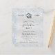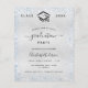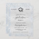 Une invitation moderne, élégante et minimaliste à la remise des diplômes. Faux arrière - plan d'apparence argentée décoré avec de la poussière de parties scintillant bleu clair. Personnalisez et ajoutez un nom, une année et des détails. Lettres de couleur noire.