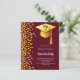 Une invitation moderne et élégante à Graduation Party. Un arrière - plan bordeaux décoré de faux confettis d'or et d'une grande casquette de graduation dorée avec goût. Personnalisez et ajoutez un nom et des détails du parti. Texte blanc. 1 feuille = 1 invite imprimé bord à bord.
