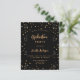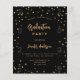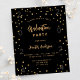 Une carte d'invitation glamour pour une fête de remise de diplômes pour lui et elle. Un arrière - plan noir décoré de faux étoiles dorées. Personnalisez et ajoutez un nom, une année et des détails de fête. Le texte Graduation et le nom sont écrits avec un script de style à la main moderne. Texte de couleur dorée. Retour : noir arrière - plan et étoiles d'or. 1 feuille = 1 invite imprimé bord à bord.
