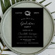 Une invitation moderne et élégante à la remise des diplômes. Un arrière - plan noir, un texte blanc. Personnalisez et ajoutez un nom, une année et des détails.