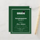 Une invitation moderne et design à la remise des diplômes. Pour lui et elle. Arrière - plan vert, texte blanc et cadre. Une casquette noire de graduation. 1 feuille = 1 invite imprimé bord à bord.