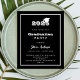 Une invitation moderne et design à la remise des diplômes. Pour lui et elle. Arrière - plan noir, texte blanc et cadre. Une casquette blanche de graduation. 1 feuille = 1 invite imprimé bord à bord.