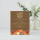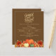 Un arrière - plan brun foncé. Décoré de fleurs citrouilles et orange et jaune. Personnalisez et ajoutez les détails de la fête. Texte : Grateful and Blessed. 1 feuille = 1 invite imprimé bord à bord.
