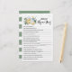 Achetez cette carte modifiable et profitez d'un jeu de quiz de haute qualité sur le Baby shower Nursery Rhyme pour votre événement! Baby shower, Activités de révélation de genre! Sage Green Brasserie Design Unisex. RÉPONSES : 1. pique de poivre mariné; 2. boucher, boulanger, bougeoir; 3. mur; 4. femme de l’agriculteur; 5. grâce; 6. trois sacs remplis; 7. Sa femme ne pouvait pas manger maigre; 8. neuf jours; 9. mitaines; 10. gâteau; 11. embrassait les filles; 12. tuffet; 13. Tarte de Noël ; 14. Pour donner un os au pauvre chien; 15. pour son souper; 16. pieman; 17. cloches d'argent, coquillages, jolies domestiques; 18. cochon.