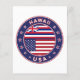 Badge de Hawaii avec drapeau d'Hawaii et drapeau des couleurs des USA, forme arrondie. Emblème d'Hawaï. Sceau d'Hawaï. Collection USA Etats. Honolulu, île d'Oahu, O'ahu, Waikiki, plage de Waikiki, Pearl City, Hilo, Kailua, Waipahu, Kaneohe, Mililani Town, Kahului, Ewa Gentry, Waimea